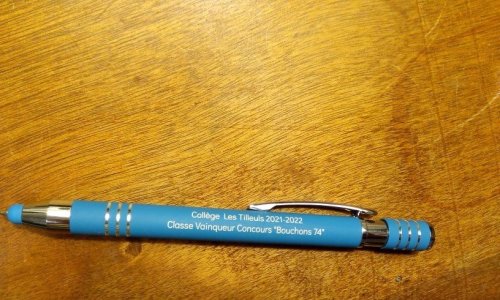 Tous les élèves de la classe gagnante ont été récompensés par un stylo spécialement gravé pour cette occasion (voir photo).