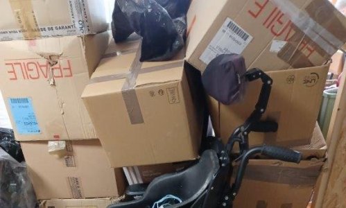 En photo : ces fauteuils, lits, scooters et autres équipements qui sont inutilisables « et qui nous ont été offerts », sous prétexte d’une Bonne Action, nous donnent beaucoup de travail et nous prennent énormément de place à réception.