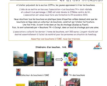 Le mardi 18 janvier 2022, deux bénévoles de notre association ont fait une présentation des Bouchons 74 à deux classes de 6ème et 5ème.