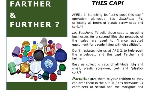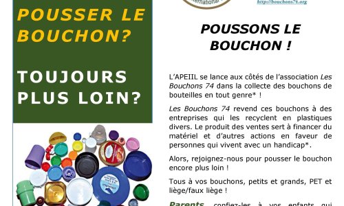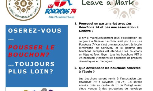 En Suisse, l’APEIIL (Association des Parents d’Elèves de l’Institut International de Lancy) lance l’opération "Poussons le bouchon".