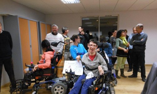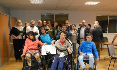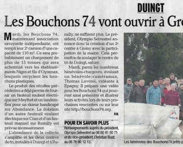 Le mardi 10 mars 2015, dans les locaux de l’ADIMC 74, a eu lieu la remise d’un chèque de 3000 euros des Bouchons 74 pour le financement d’un fauteuil foot Ball.