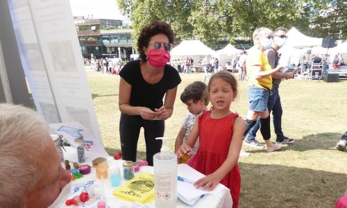 Un petit garçon de 5 ans demande "comment vous faites des sous avec des bouchons ?". - et aussi donner l’envie de nous rejoindre en tant que bénévoles et promouvoir notre fête de la pomme.