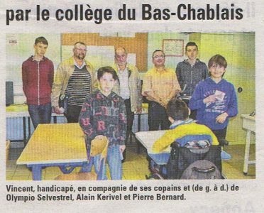 Article du Messager du : 13/05/2015 ; DOUVAINE : Collecte des bouchons par le collège du Bas-Chablais