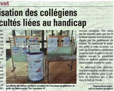 Pour mémoire, les Bouchons 74 avaient participé au financement du fauteuil électrique d’une des personnes représentant l’association "Haut les Cœurs".