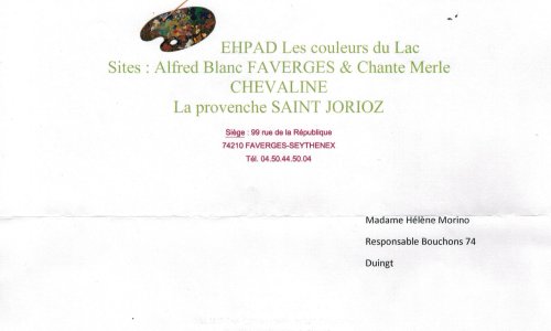 L’EPADH de Saint Jorioz Les couleurs du Lac nous remercie