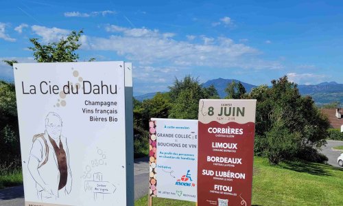 Notre collecteur Patrick MOENE de la Compagnie du DAHU à ÉTEAUX, vient de poser une dizaine de panneaux pour récolter des bouchons pour nous.