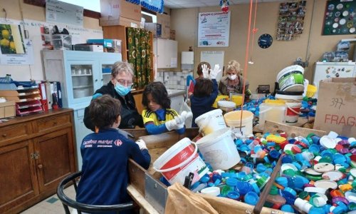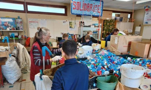 2 groupes ont été créés, l’un au tri des bouchons en matière plastique et l’autre a pu être pris en charge pour être renseigné sur la démarche des Bouchons 74 avant de rejoindre le tri des bouchons en liège.