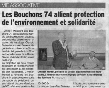Le 11 décembre 2018, Jean-Louis NICOLLE, notre responsable secteur ARGONAY, a fait une intervention de sensibilisation et d’information sur les actions des Bouchons 74.