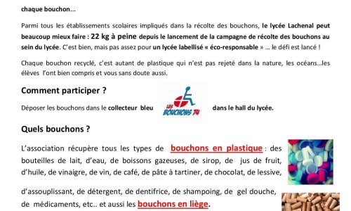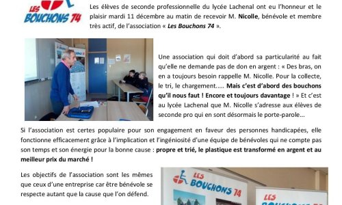 Les Bouchons 74 au Lycée Louis Lachenal d’ARGONAY.