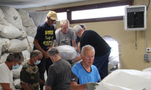 Une chaine humaine s’est mise en mouvement pour empiler tous ces bouchons prêts à être expédiés dans un prochain camion.