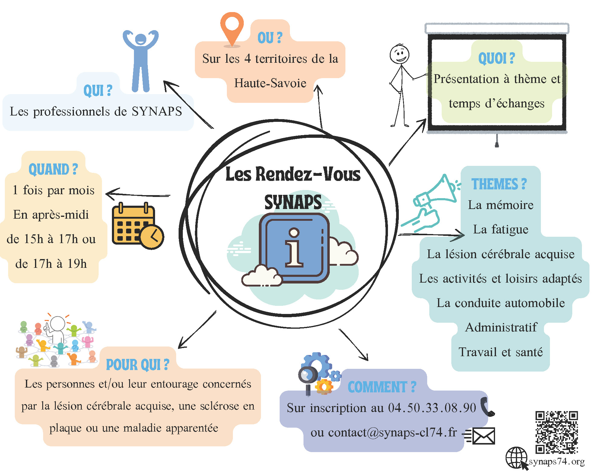 Attention ! Il est nécessaire de s’inscrire en amont auprès du secrétariat de l’Association SYNAPS 74 par mail contact@synaps-cl74.fr ou téléphone 04.50.33.08.90.