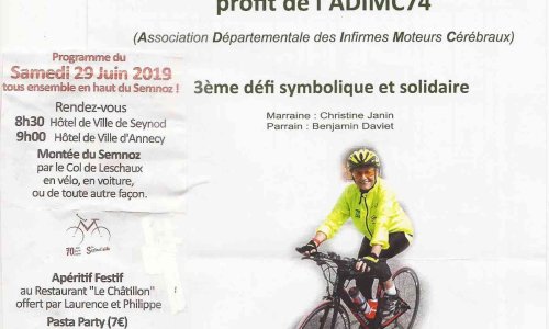 Si vous voulez l’accompagner en haut du Semnoz deux rendez-vous Samedi 29 juin 2019 8h30 Hôtel de ville de SEYNOD 9h00 Hôtel de ville d’ANNECY.