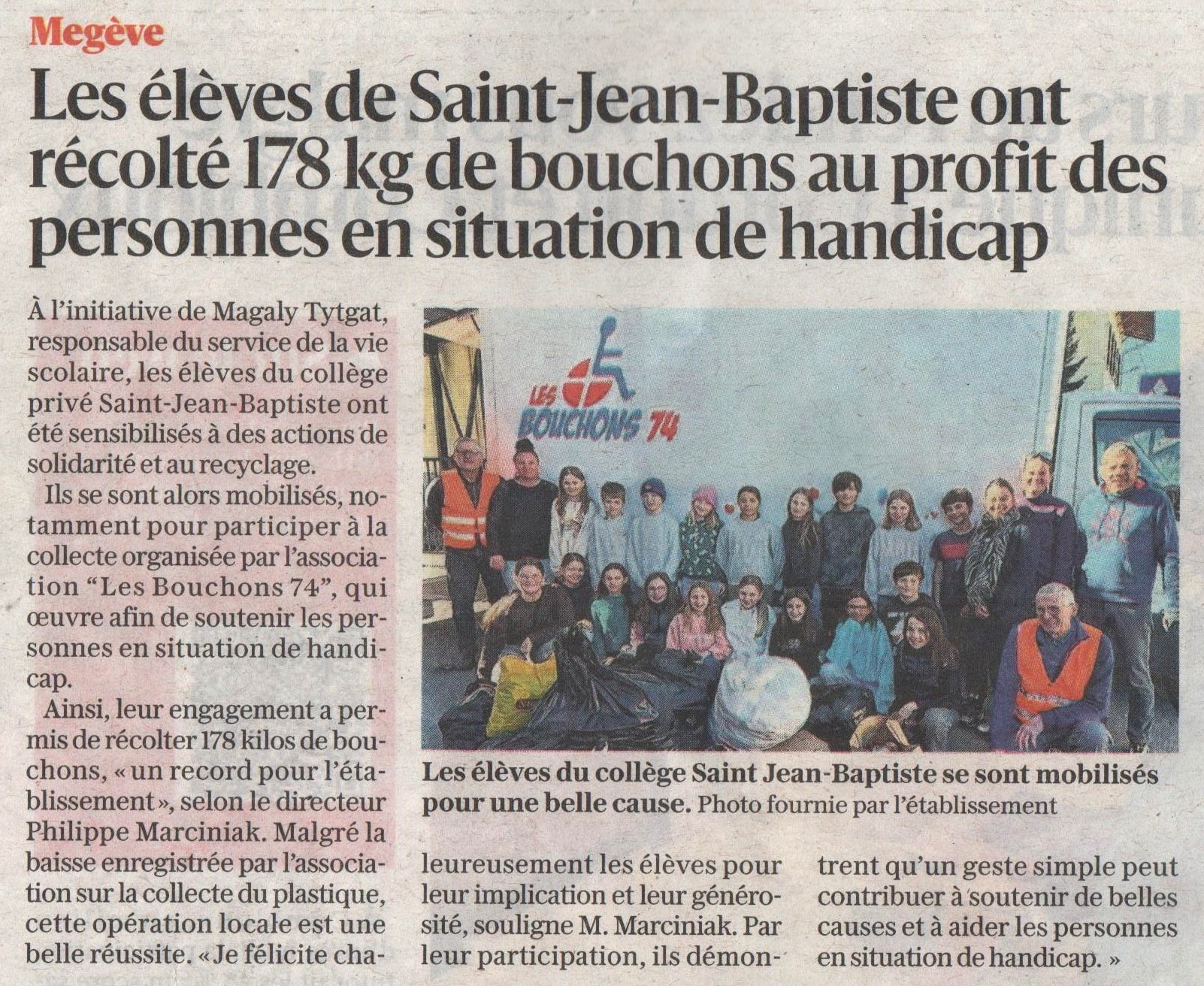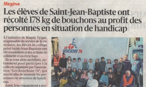 Megève : Les élèves de Saint-Jean-Baptiste ont récolté 178 kg de bouchons au profit des personnes en situation de handicap