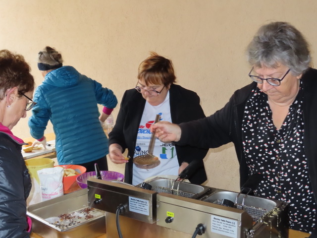 Nouveauté cette année avec l’idée de faire des beignets aux pommes qui s’est transformée en un succès gustatif ! Bravo mesdames, la tâche n’était pas simple et vous avez ravi les papilles de nombreux visiteurs !