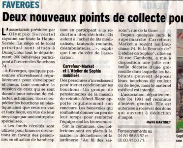 100 % de la vente des bouchons plastique sert à aider les personnes en situation d’handicap de la Haute-Savoie.