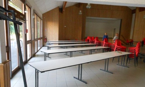 Préparation de la salle, mise en place des tables et de la décoration, du vestiaire.