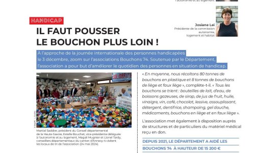 Page Bouchons 74 dans le magazine du Département Décembre 2024