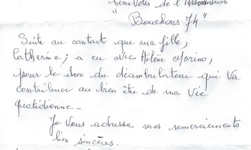 Remerciements d’une bénéficiaire d’ANNECY