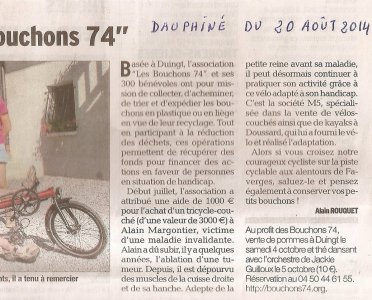Ce don des Bouchons 74 bénéficiera à un monsieur d’à peine 40 ans atteint d’une maladie rare qui s’apparente à la maladie de Charcot (sclérose latérale amyotrophique).