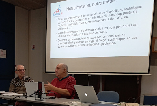 Ce jour là Michel JACOB, accompagné de René CROSET a présenté LES BOUCHONS 74 aux représentants départementaux de toutes les associations sportives. Son PowerPoint a été suivi par une séance de questions/réponses.