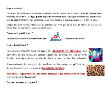 Sensibilisation des Bouchons 74 à l’ECOLE de VEYRIER du LAC