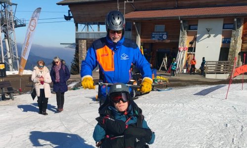 Deux photos de Théo, petit-fils d’une de nos bénévoles, avec son Papa, son frère Mathis et Jean-Claude (handisports Annemasse) qui a pu profiter au mois de Février d’une belle neige.