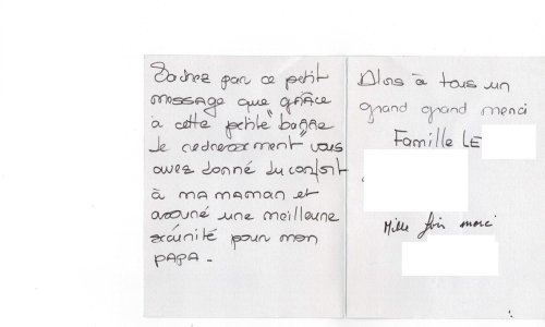 Ce petit mot nous touche beaucoup, les bénévoles de notre association apprécient beaucoup et sont encouragés dans leurs actions.