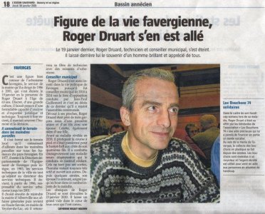 Article de l’Essor Savoyard du 30-01-2020 : Figure de la vie favergienne, Roger DRUART s’en est allé