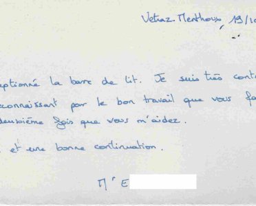Nous tenons à remercier cette belle personne pour tous ses compliments et remerciements.